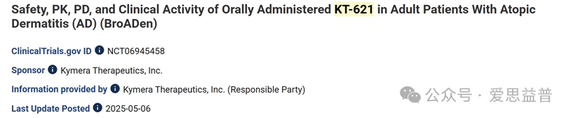 图1 Kymera KT-621 ClinicalTrials 官网信息
