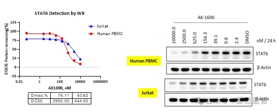 图8 采用WB方法评价化合物对STAT6的降解活性