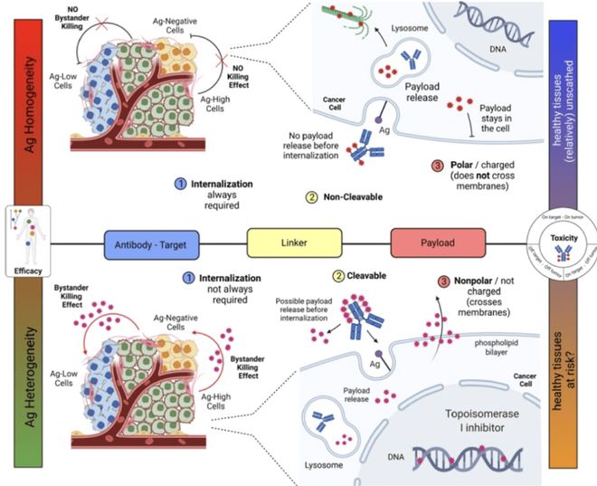 临床前数据显示强旁观者效应的ADC,在患者体内对异质性肿瘤的控制率提升2-3倍。T-DXd(Enhertu)的成功,正是基于其高效旁观者杀伤能力。